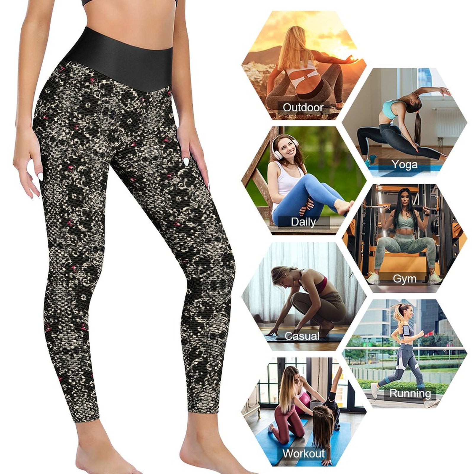 Munsieur Custom Printed Honeycomb Textured Yoga Leggings for Women