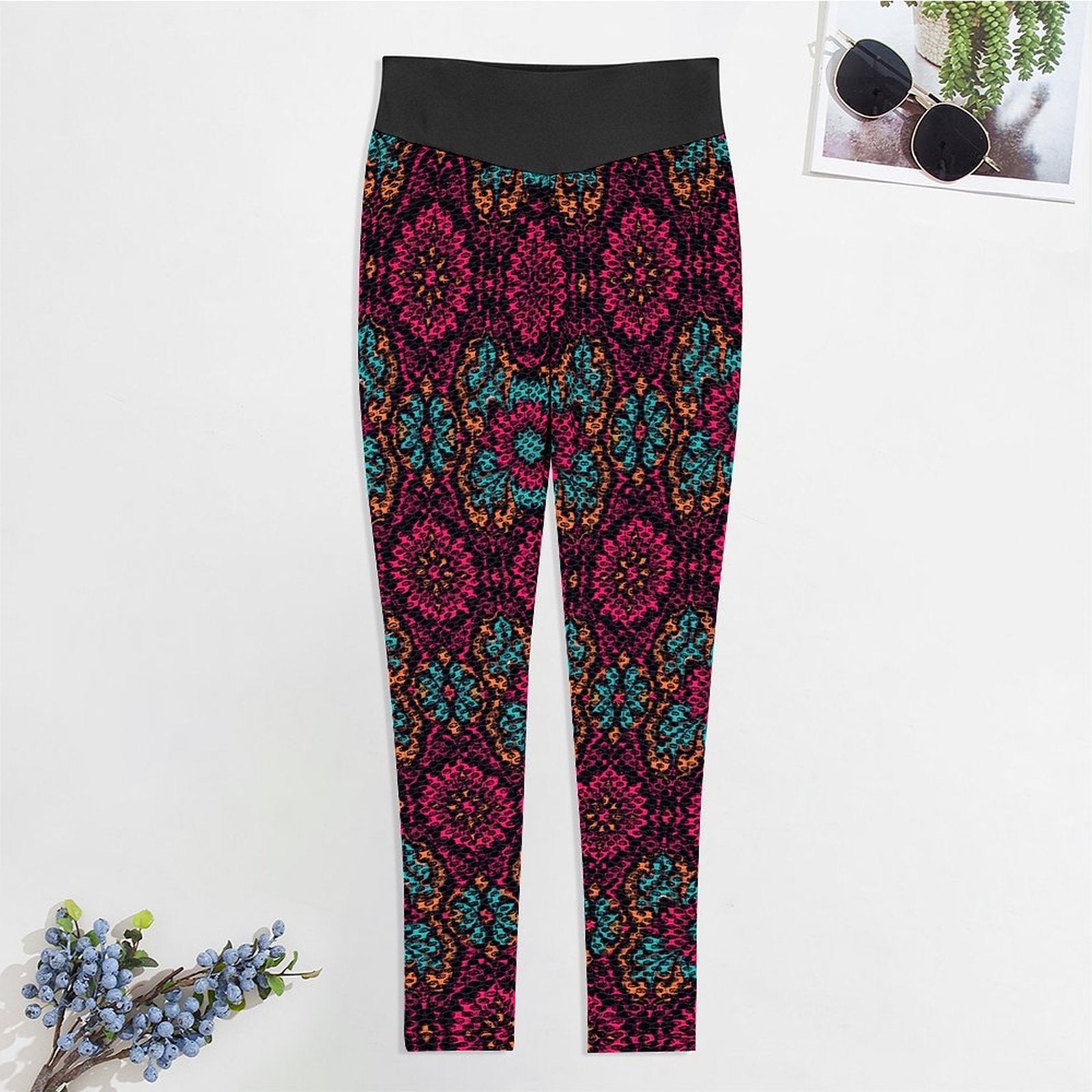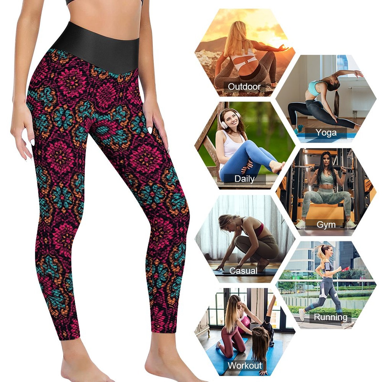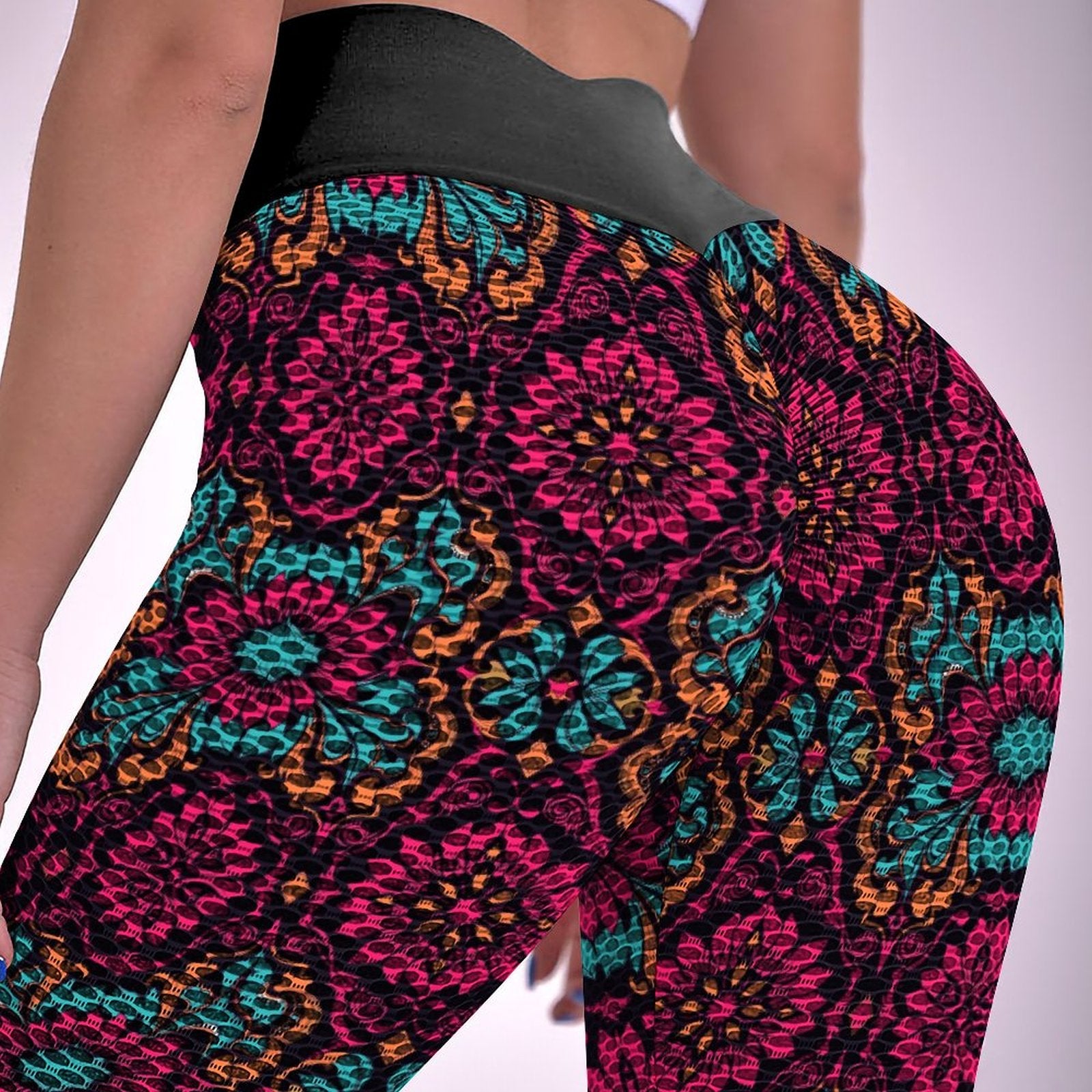 Munsieur Custom Printed Honeycomb Textured Yoga Leggings for Women