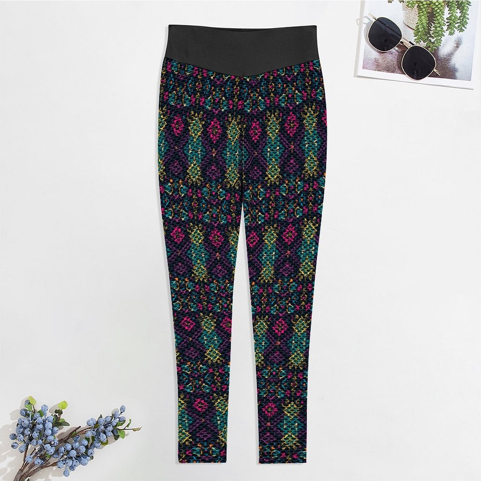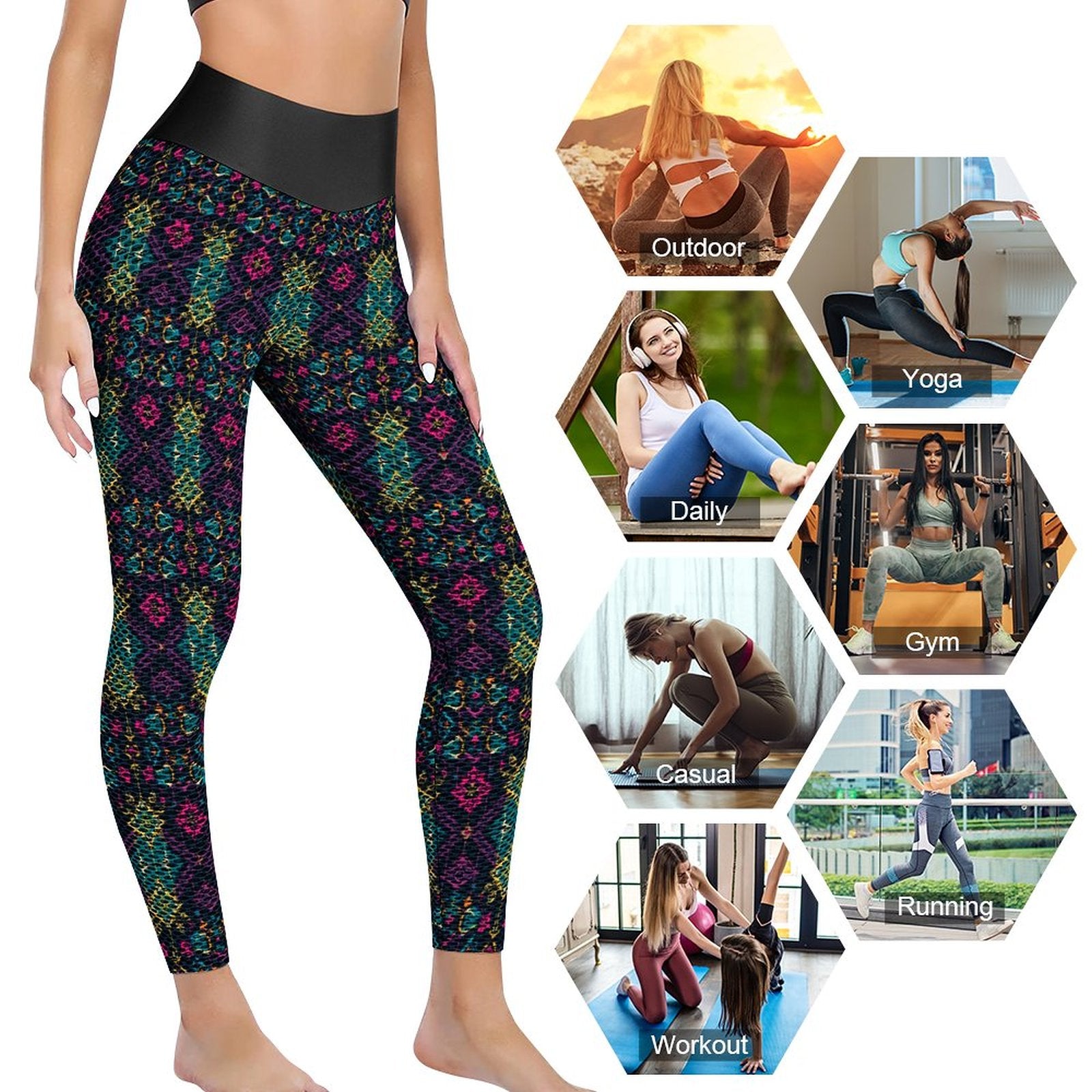 Munsieur Design Custom Printed Honeycomb Textured Yoga Leggings for Women